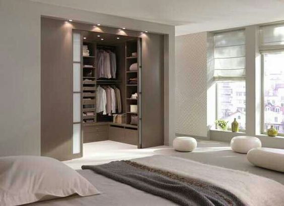 Si cuentas con un espacio suficientemente amplio, además tendrás la oportunidad de vestirte y desvestirte allí mismo. Recuerda incorporar objetos como un espejo de gran tamaño, un perchero y un sillón o descalzador. No olvides instalar una buena iluminación que te permitirá tomar las mejores decisiones a la hora de escoger tu ropa.