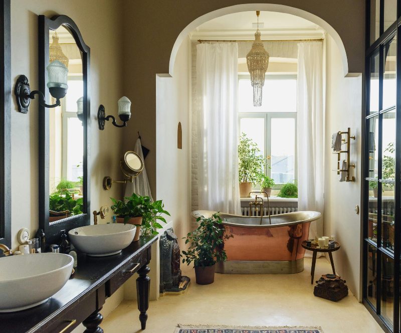 Transforma tu baño en un pequeño oasis con plantas a las que les gusta la humedad, como las alocasias o los helechos.