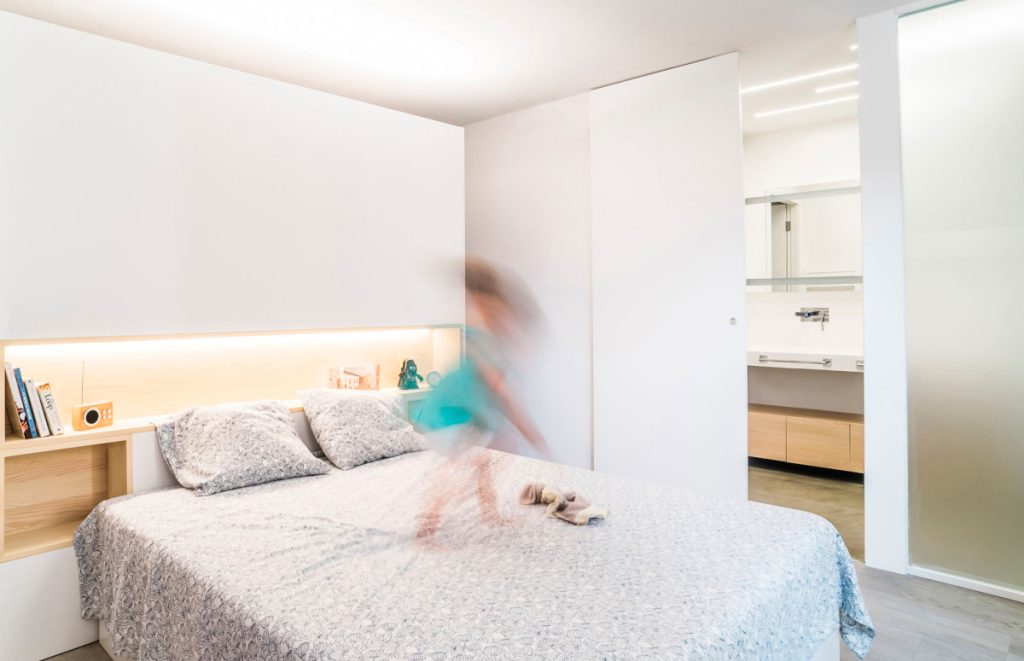 Esta vivienda respiraba en origen, antes de su segunda vida, una distribución complicada, muy compartimentada y oscura, con calidades de otro tiempo, fría y gris.