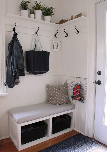 Si puedes añadir unas baldas hazlo, ya que te proporcionarán el espacio suficiente para dejar las cosas que lleves al llegar a casa: llaves, bolsos, chaquetas…